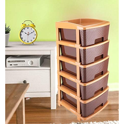 5tier Plastic Modular Drawer System For Multiple Use (Brown colour)