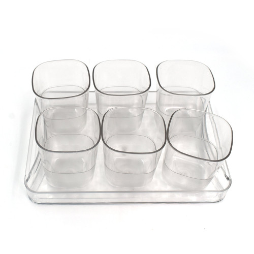 6pc Glasses Set With tray Stylish Transparent Water Glass / Juice Glass / Beer Glass / Wine Glass Plastic Glass Set