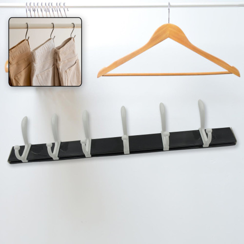Cloth hanger, Wall Door Hooks Rail for Hanging Clothes for Hanging Hook Rack Rail, Extra Long Coat Hanger Wall Mount for Clothes, Jacket, Hats, 6 Hook With Eco-friendly Liquid Adhesive Glue