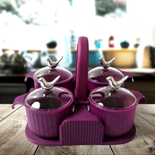 8221 Multipurpose Silver Sparrow, Jar Dry fruit Set, for Home and Kitchen Airtight Dry Fruit Plastic Storage Container Tray Set With Lid & 4 Serving Jar Container for Sweets, Chips, Cookies | (4 Pc Set)