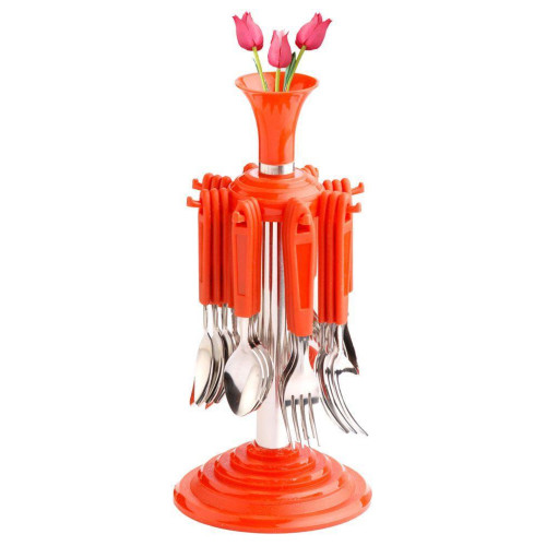 Kitchen Cutlery Serving Set with Revolving Stand Made from Stainless Steel & ABS Plastic (24 Pcs)