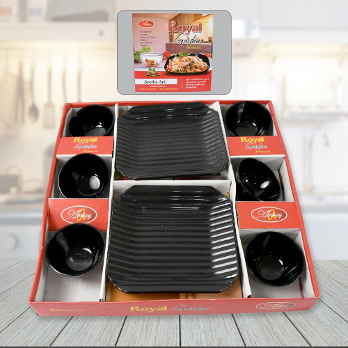 6 pcs Medium Bowl & 2 pc Serving Platter Made From High-quality Ceramic Material Bowl & high quality plastic platter.
